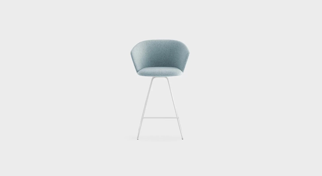 GLOVE 系列吧台椅符合人體工學和極致舒適,這是 GLOVE 的優勢,這款座椅以高靠背支撐著背部,舒適的軟墊層包圍整個座椅,GLOVE 線條的柔和感延伸到了椅腳,椅腳為金屬材質的雪橇形狀,細長的腳踏板以不連續的方式穿越雪橇的造型,呈現更現代感的設計。