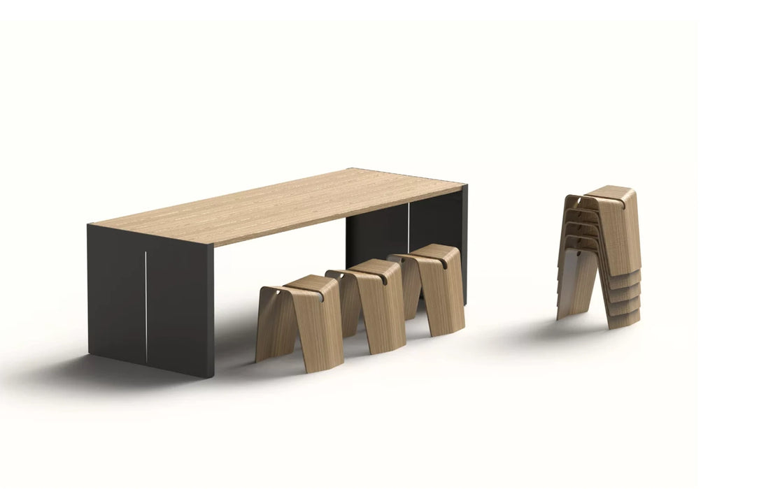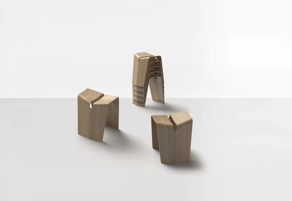 Mario Ferrarini 設計的 KAMI,是一款特色鮮明的多功能椅凳。靈感來自於古代的摺紙藝術,產品命名來自於日文的 KAMI - 紙” 的意思,具有一種純粹的魅力形式,集結了幻想,功能性,柔美,持久耐用和舒適等多種特性。以合板為原料材質,柔和地呼應設計的線條將 3D 模型的付諸實現。中間的開孔在注模成型的過程中經過反覆的折疊和反折,成為一個舒適的把手,讓它如搖籃般的輪廓線條更加突顯。可堆疊的特性,讓 KAMI 宛如一個可隨處攜帶的筆記本般,以放鬆和創意的方式伴隨著我們的每一天。