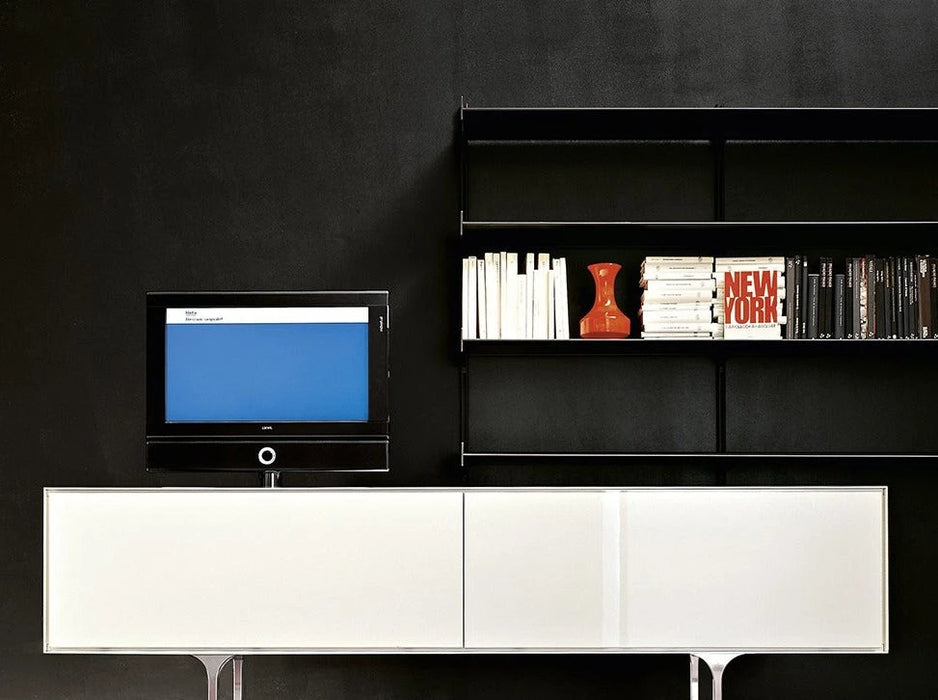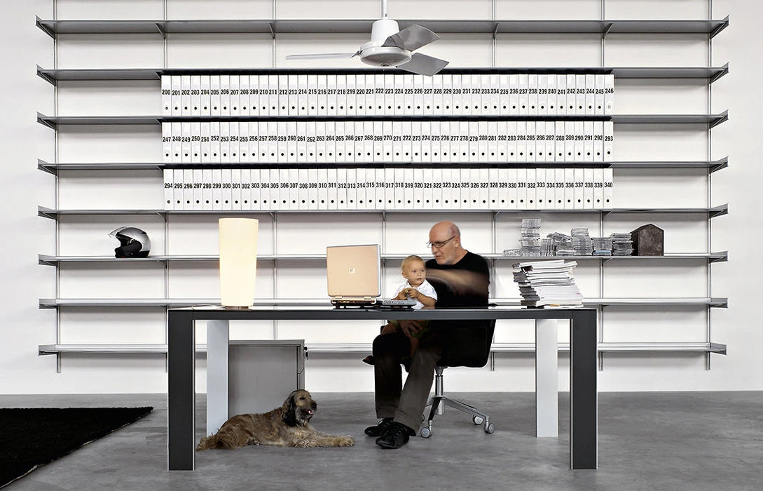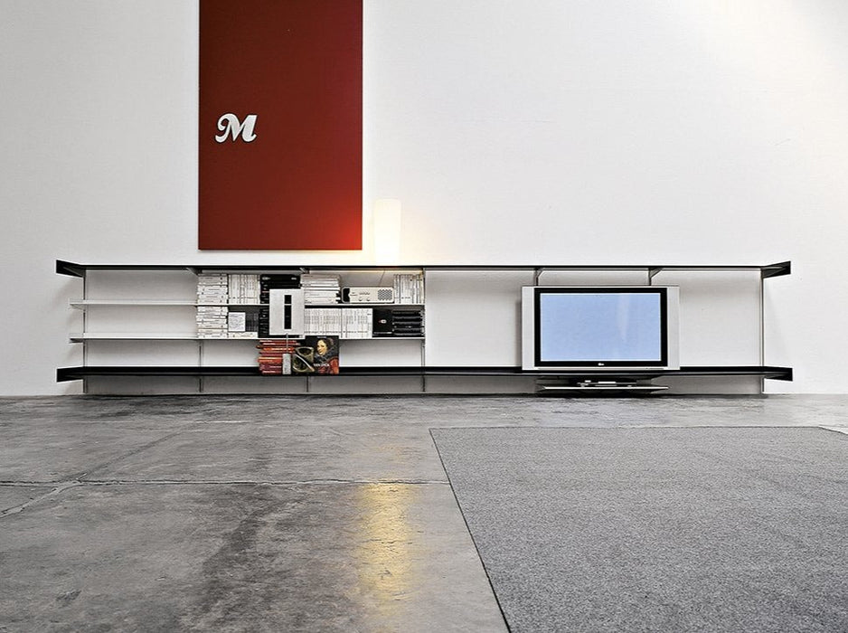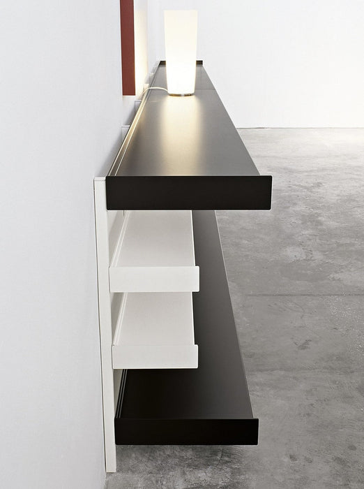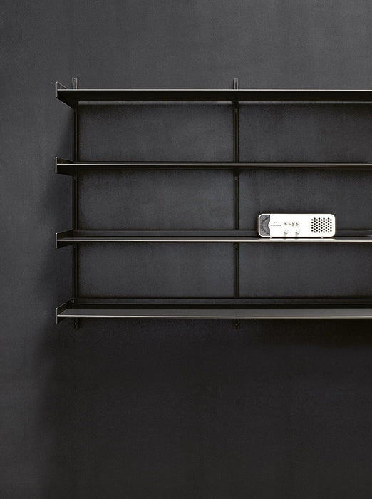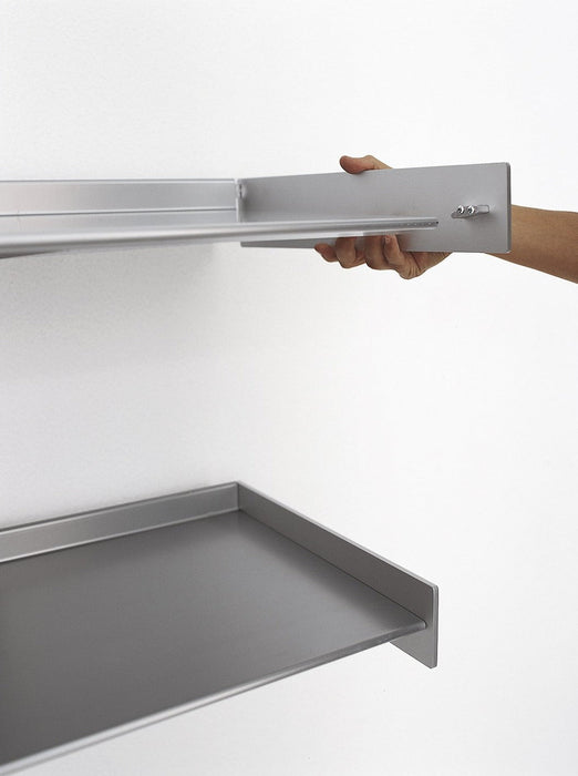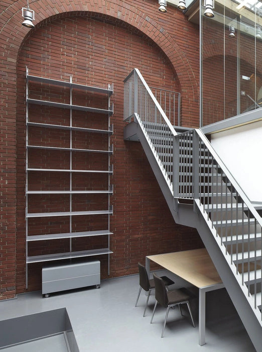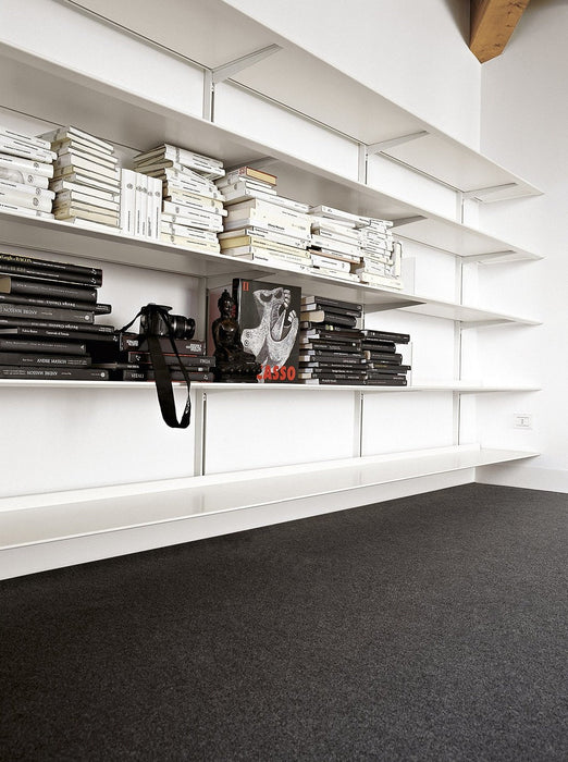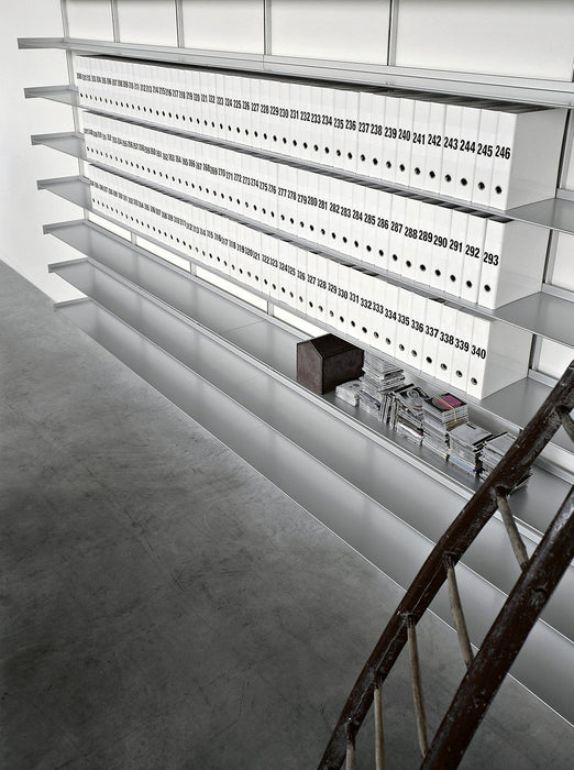 Dot 系統層架可用於立面、側面,可以精確地調整到適合您喜好的任何高度,可以靠牆、掛在牆上或立在支架上, 並提供六種標準尺寸或定制尺寸,可容納大量文件和書籍儲藏空間,多個層架單元可以組合在一起,形成更大的存儲空間,也可以根據需要裁切成合適的尺寸, 可以部分拆除,以便容納電視或其它較大物品空間,立柱由擠壓陽極氧化鋁製成, 層架採用噴漆的金屬板製成,也可以安裝輪子上在房間內輕鬆移動,從客廳、廚房、工作室、衣櫃到壁櫥, Dot 系統層架幫助實踐您完美的家具佈置。