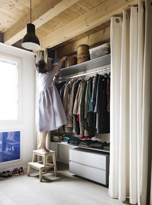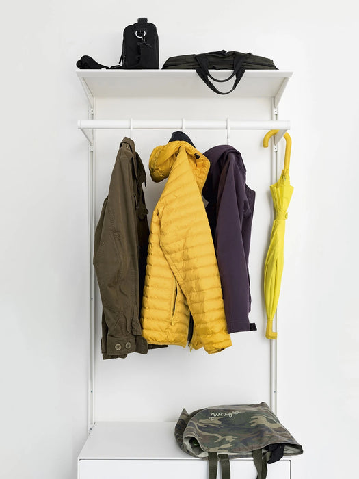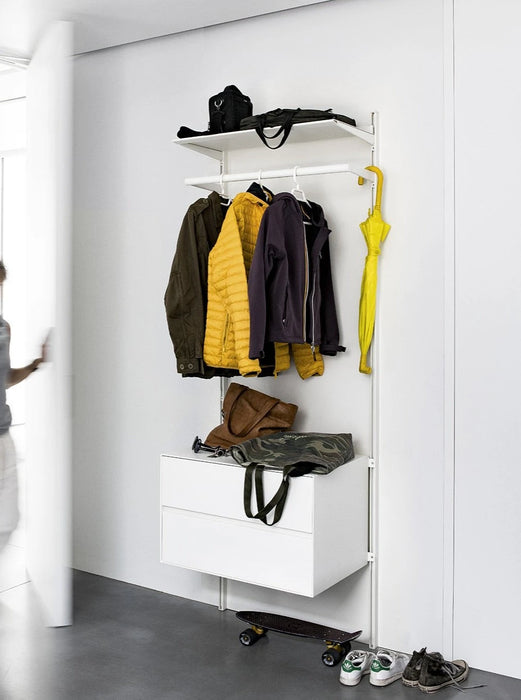 Dot 系統層架提供許多其他選擇配件: 書架、掛衣架、燈桿和抽屜組件,可以壁掛或落地安裝,與系統組合或獨立放置。