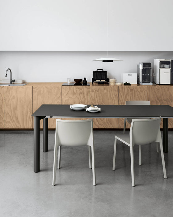 義大利岩板.大理石餐桌 Bodoni 固定桌由四個厚實的桌腳組成,如同支柱般支撐著一片輕量級的固定或延伸桌桌板,有趣的線條對比就像字體排版一般。Bodoni 桌子的組合十分簡易,將任何複雜的細節簡化後去蕪存菁。義大利岩板.大理石餐桌 Bodoni 系列提供不同尺寸和顏色的選擇,桌腳及接合部分為鋁質,桌板可選擇 Fenix 或是大理石桌板,散發現代設計風格外型。