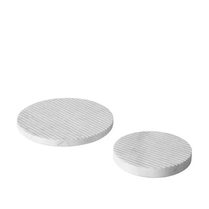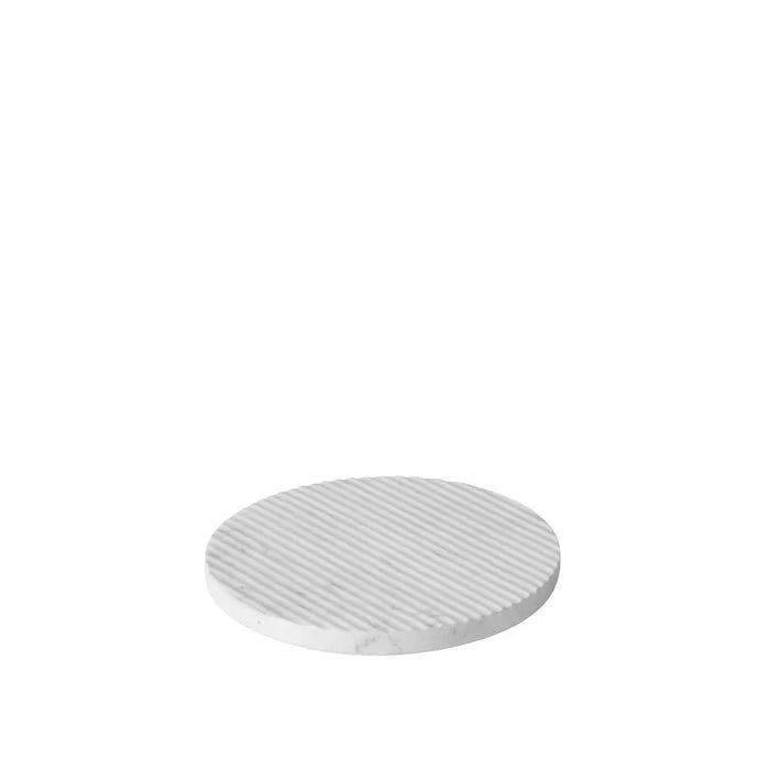 出自設計師 Hallgeir Homstvedt 之作,使用石材中的珍品大理石所切割打造。天然大理石擁有獨特清晰紋路與地理色澤,耐熱性佳、抗污性佳,刮傷也不明顯。方石擺盤以凹槽構面結合光澤表面的設計,細緻的光澤表面可盛放糕點,粗糙的止滑溝面可作為熱湯之用,兼顧耐用美觀,放在桌上也能凝聚視覺焦點。