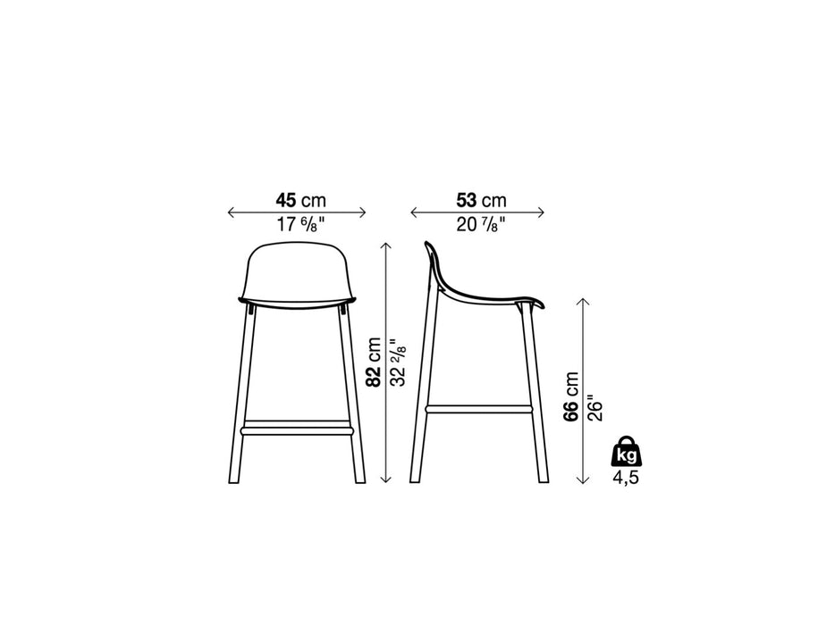 • 中島椅:寬 45 cm x 深 53 cm x 高 82 cm,座高 66 cm