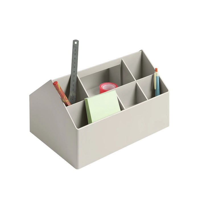 小巧親和力十足的 Sketch 文具盒,可更有效收納桌面上的工具和物品。靈感發想來自房屋外型建築簡易直覺的線條設計,提供不同深度多個收納間隔,中央頂端一體成型的簍空把手設計,具有方便移動的特性。Sketch 文具收納盒以91% 的回收塑料製成,現代感的收納設計,能滿足居家工作,辦公場所和衛浴空間等不同日常生活需求。